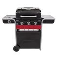В левом пристолье установлена дополнительная боковая горелка мощностью 3.5 кВт., прикрытая защитной крышкой. Правое пристолье оборудовано встроенной открывашкой для бутылок из литого под давлением цинка с тисненым логотипом. Встроенный в крышку термометр позволяет легко контролировать температуру. Стальной корпус с усиленной рамой, сзади достаточно места для хранения газового баллона и различных аксессуаров. Колеса для легкого перемещения по участку.